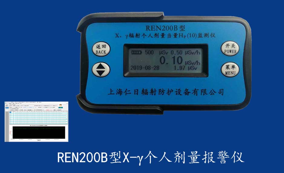 REN200A 個(gè)人報(bào)警儀REN200A型X、γ輻射個(gè)人劑量當(dāng)量HP(10)監(jiān)測(cè)儀(簡(jiǎn)稱:個(gè)人劑量報(bào)警儀)內(nèi)置高靈敏度蓋格計(jì)數(shù)管為探測(cè)器,主要用來(lái)監(jiān)測(cè)各種放射性工作場(chǎng)所的X、γ以及硬β射線的輻射,具有響應(yīng)快,測(cè)量范圍寬的特點(diǎn)。能顯示工作場(chǎng)所的劑量當(dāng)量率和累積劑量,更換電池時(shí),日期及累積數(shù)據(jù)能永久保存。可選配RenRiPersonal個(gè)人劑量管理軟件,該軟件可存儲(chǔ)多個(gè)人的歷史數(shù)據(jù),能記錄日累積、月累積、年累積、輻照時(shí)長(zhǎng)、計(jì)算平均劑量率、扣除或不扣除本底輻射,且以文字和圖譜的方式展現(xiàn)數(shù)據(jù)。廣泛應(yīng)用于核電站、加速器、鋼鐵、化工、同位素應(yīng)用、工業(yè)X、γ無(wú)損探傷、放射醫(yī)療、鈷源治療、γ輻照、放射性實(shí)驗(yàn)室、核設(shè)施周圍環(huán)境監(jiān)測(cè)等領(lǐng)域中的工作人員進(jìn)行個(gè)人安全